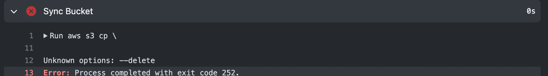Error: Process completed with exit code 252.