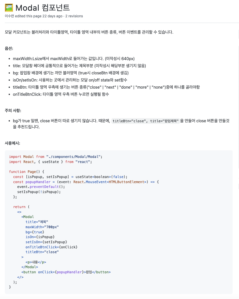 팀원들이 내가 제작한 컴포넌트를 어떻게 하면 더 잘 활용할 수 있을까 연구하고 문서로 남긴점