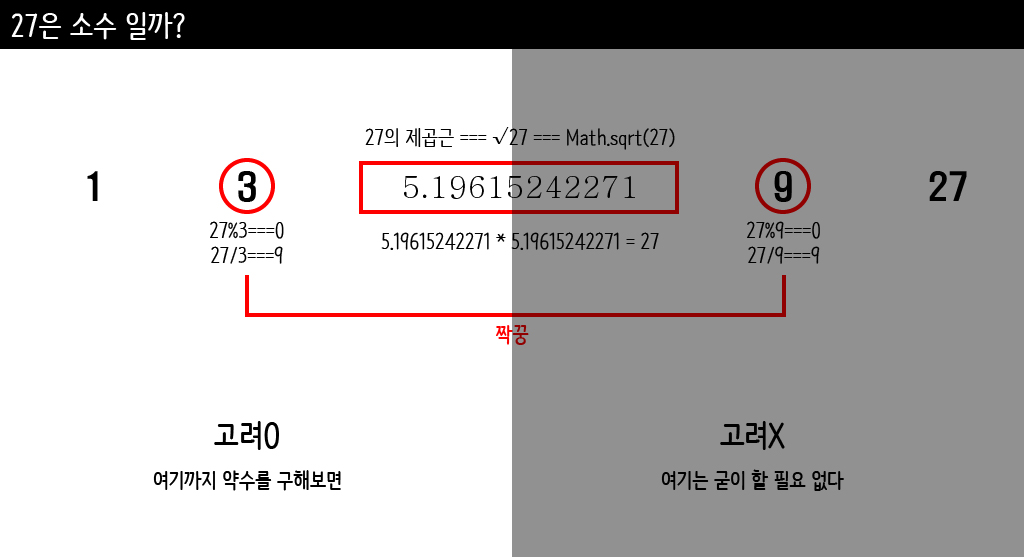 //단 숫자의 제곱근까지만 약수를 체크한다. (제곱근의 소숫점은 떼버린다.)