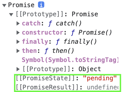보시다시피, [[PromiseState]]와 [[PromiseResult]라는 키가 정해져있다.
