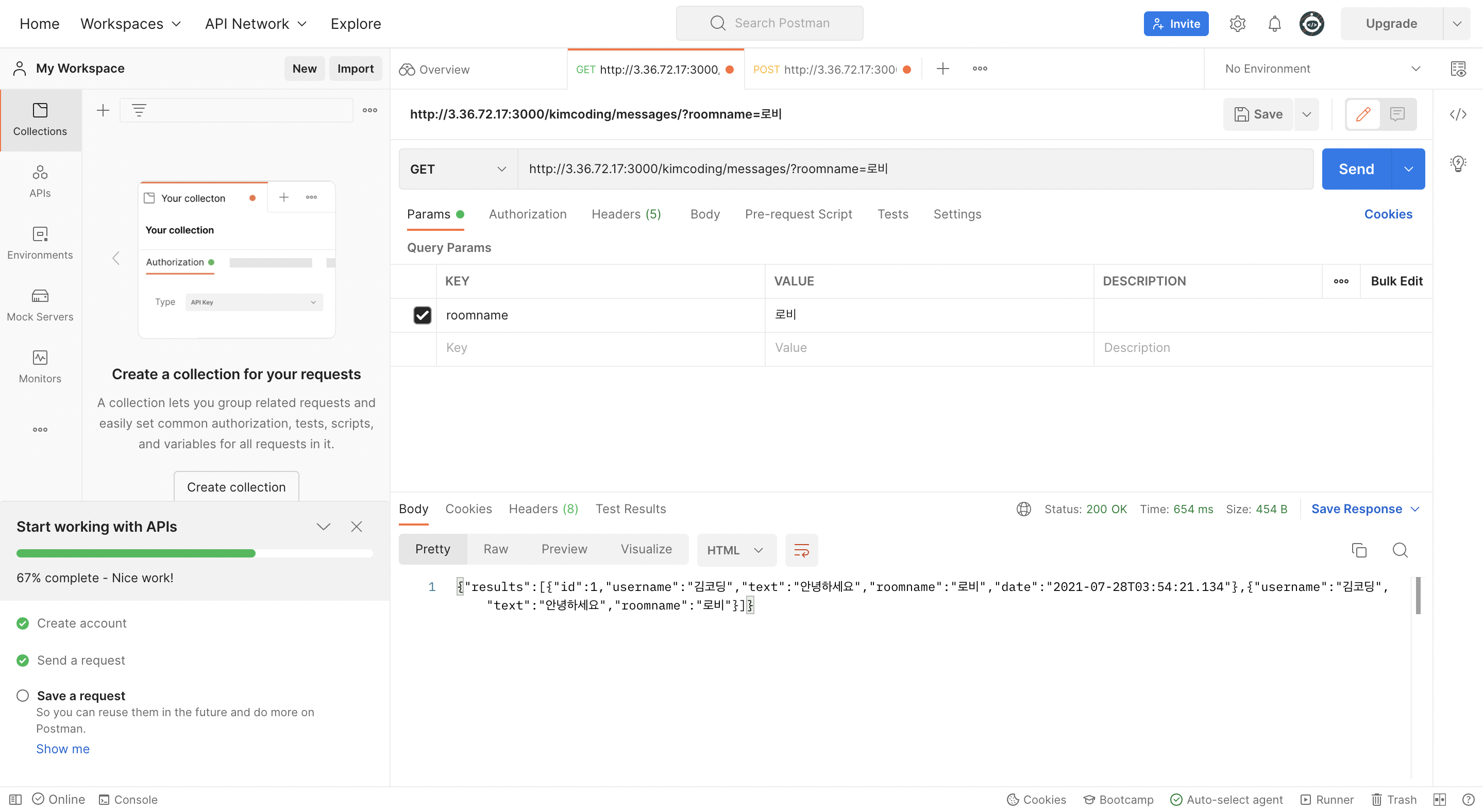 이 내용을 Postman 에서도 이용해보면 동일한 결과를 얻어올 수 있다.