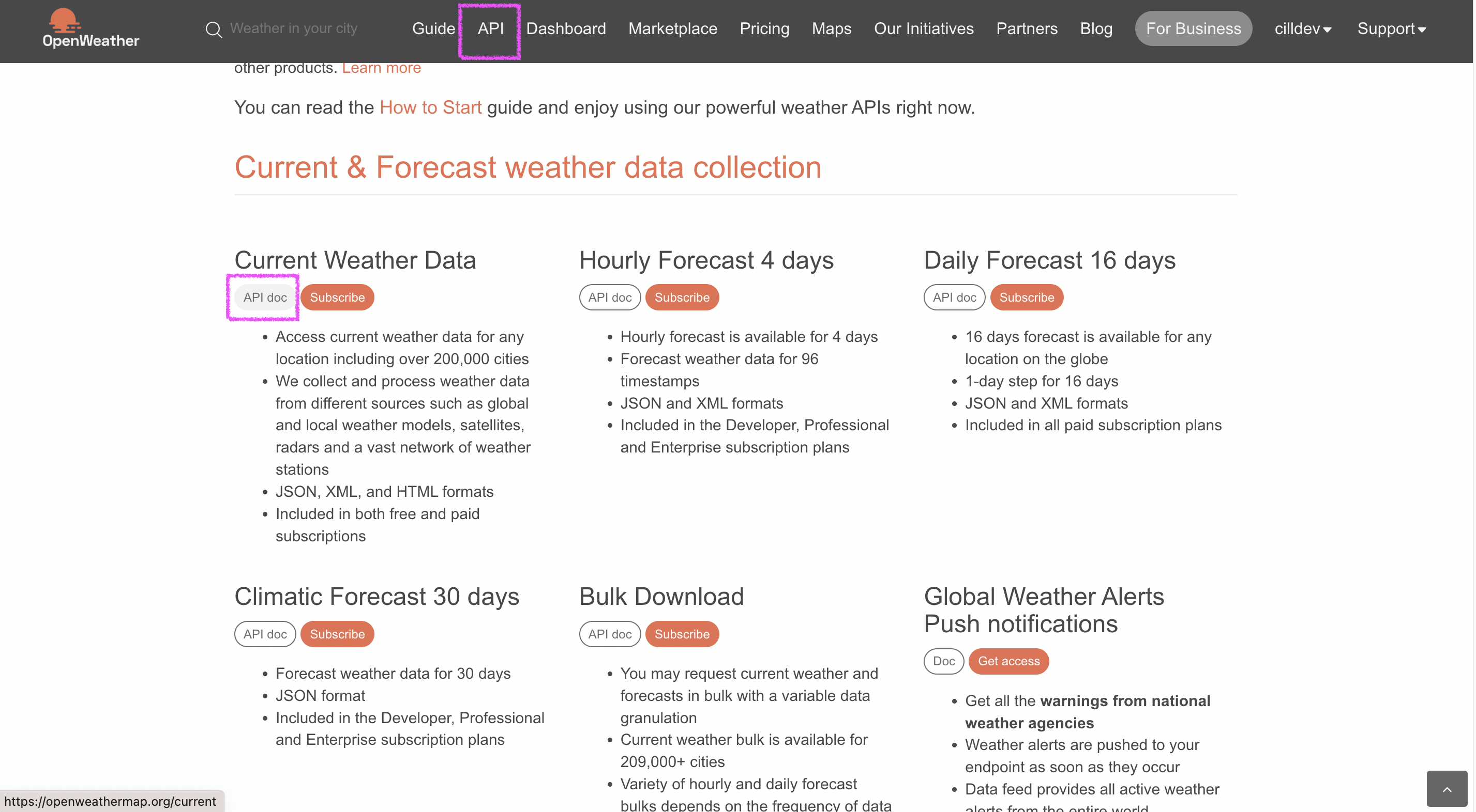 open API인 openweather은 날씨에 관련된 다양한 무료 API를 제공한다.