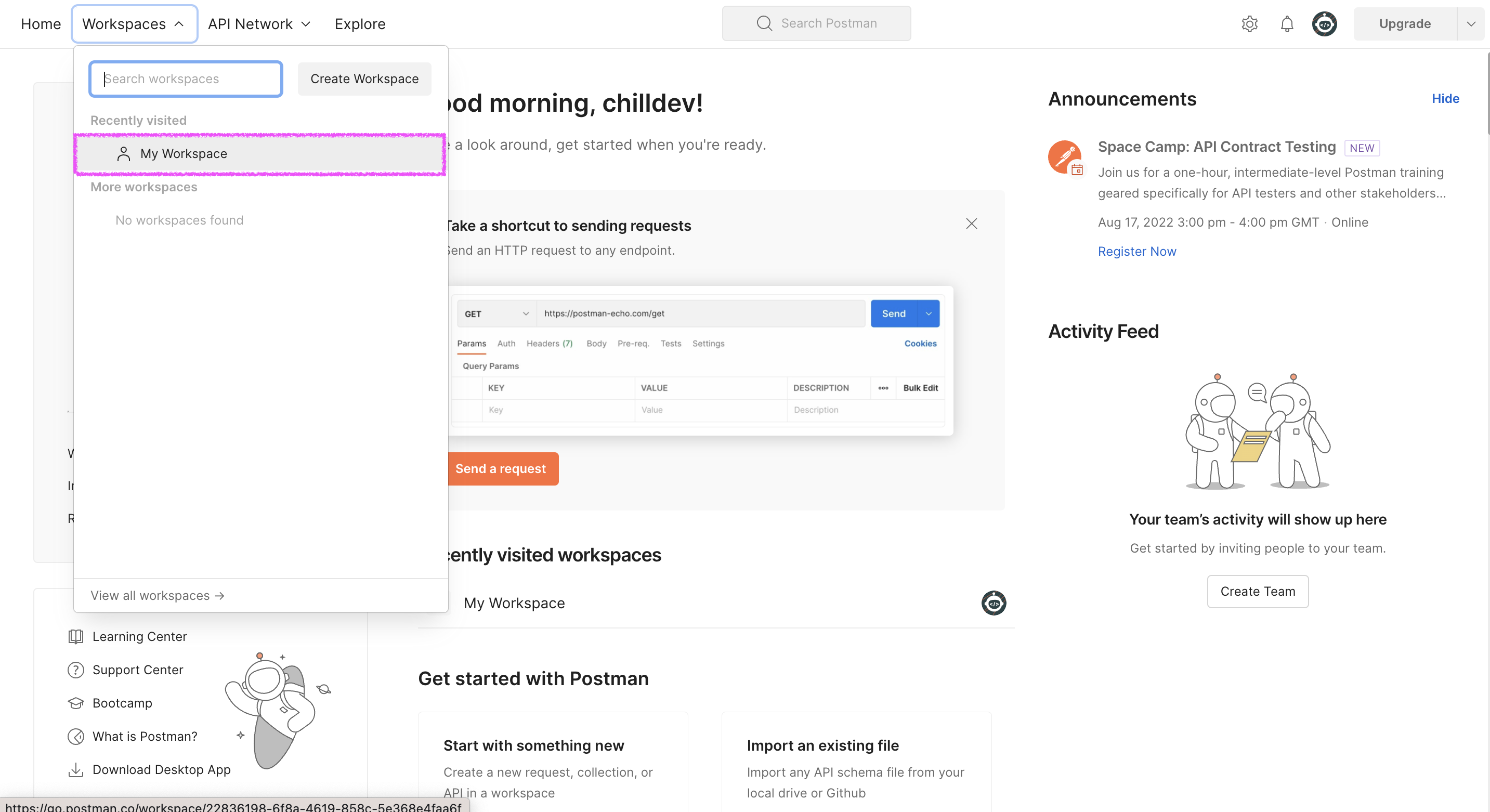 2. Workspaces > My Workspace