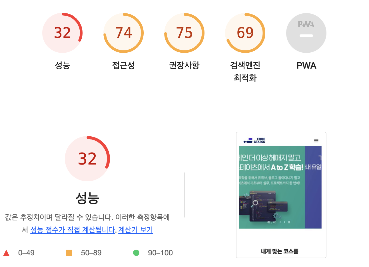확실히 이미지를 많이 넣는 사이트는 최적화에 신경쓸 필요가 있겠다 싶었다.